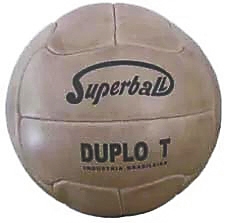 “莫德罗T”,是1930年乌拉圭世界杯的比赛用球,因其由11片T形的皮革缝制而成,被很形象地称为“T字球”,一度流行30余年。这种球,使用前需要将气吹进猪膀胱制成的内胆,然后将口子系紧并整个塞进球体内,最后用皮绳把开口封好。由于封口的带子很容易磨损,基本上1场比赛就要换1根带子。