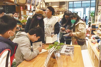 林森(左)在给读者签名。