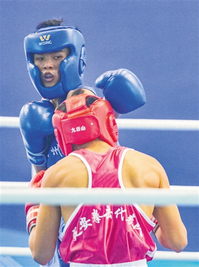 第六届省运会拳击比赛精彩瞬间。