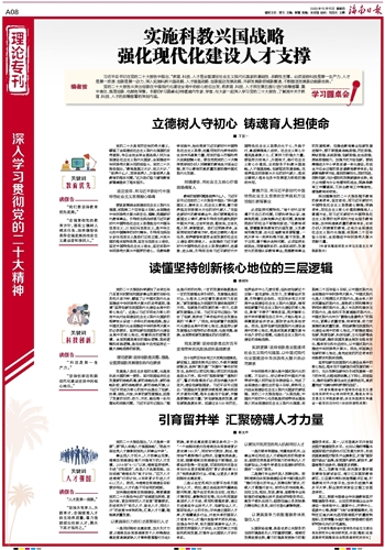 加快推进海南自贸港建设,需要遵循党的二十大报告作出的“实施更加积极、更加开放、更加有效的人才政策”部署要求,形成有利于“吸引人才、留住人才、用好人才”的政策与体制机制,汇聚人才力量,赋能高质量发展。