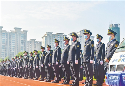 12月14日上午,海口市综合行政执法局举行制式服装换装仪式暨能力提升建设年活动“双公示”大比武总结表彰活动。(海口市综合行政执法局供图)