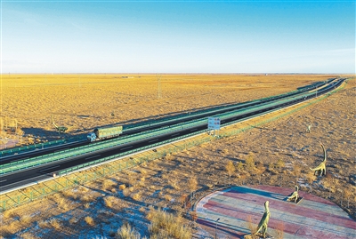 当日,由内蒙古路桥集团和中交一公局共同承建的二(二连浩特)广(广州)高速二连浩特至赛汉塔拉段公路主线改扩建工程通过交工验收,正式通车。这标志着二广高速公路全线建成全封闭高速公路。新华社发(王正 摄)