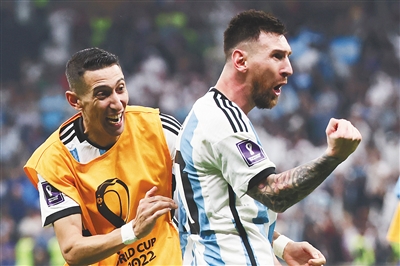 本报讯 北京时间19日凌晨,卡塔尔世界杯落幕。阿根廷队在决赛中通过点球大战击败法国队,第3次夺得世界杯冠军。在阿根廷队与法国队的终局之战中,上半场第21分钟,阿根廷队迪马利亚制造点球,梅西一蹴而就打破僵局。此后,阿根廷队通过快速反击由迪马利亚推射破门,将比分改写为2:0。易边再战,更换了进攻组合的法国队制造出更多威胁。第80分钟,姆巴佩主罚点球命中,97秒后,姆巴佩抽射再度破门,双方回到同一起跑线。常规时间内,两队战成2:2。
