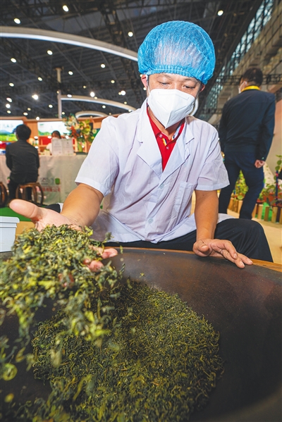 12月15日,冬交会海南农垦馆,一位师傅在炒茶。 海南日报记者 袁琛 摄