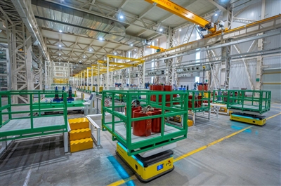 ②在位于海口综合保税区的海南金盘智能科技股份有限公司,机器正在自动搬运设备。(资料图)
