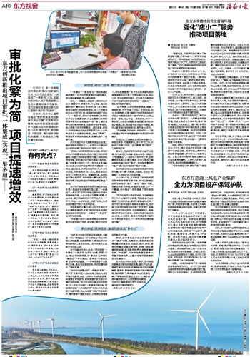 “此次东方市进行的项目审批制度,无疑是一次从‘物理融合’到‘化学融合’的工作流程系统性重塑,构建起跨部门、跨层级的行政审批新模式,具有首创性。”东方市委办公室副主任刘观卫说。