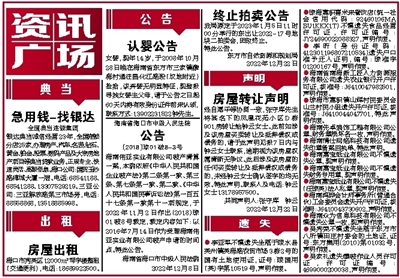 ●海南众为信息科技有限公司不慎遗失公章一枚,现声明作废。