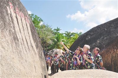 在国家4A级风景名胜三亚“天涯海角”,有一处鲜为人知的石刻遗迹——“海判南天”,不但与“天涯”“海角”等石刻明显不同,具有人工剖凿的痕迹,而且每年冬至正午12时,其南面的剖石斜面与太阳的角度完全吻合。