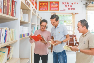 ①海南农垦东路农场公司职工在党群活动中心阅读交流。