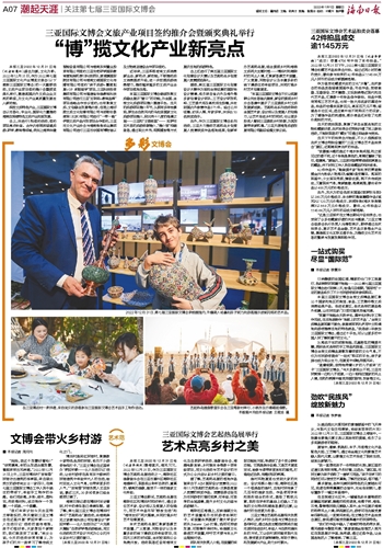 “本届三亚国际文博会不仅让观展群众关注场馆内展商,新设的美丽乡村分会场集中展示了三亚美丽乡村文旅发展新成就。艺起热岛系列活动联动全国艺术家、设计师以及策展人的创造力,让艺术走进乡村的同时,也让更多投资人看到三亚美丽乡村资源,为其发展带来新机遇。”三亚天涯海角旅游发展有限公司副总经理文琼云说。
