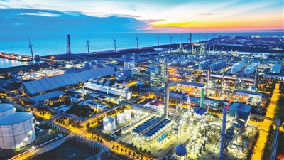 东方市临港产业园,夜景灯火璀璨。近年来,东方在原有油气基础上,积极推动油气化工向新材料和精细化工等下游产业链延伸,东方临港产业园发展步入快车道。(资料图)