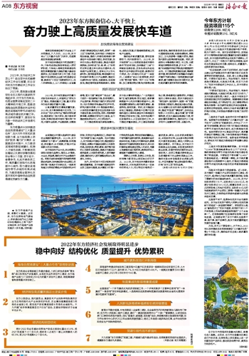 2023年,东方将发展经济的着力点放在实体经济上,牢固树立“项目为王”理念,把推进重大工程、重大项目作为经济建设的重中之重。
