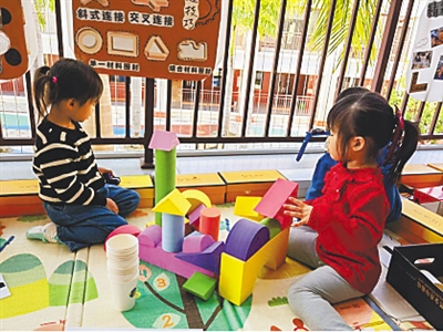 幼儿在玩积木。