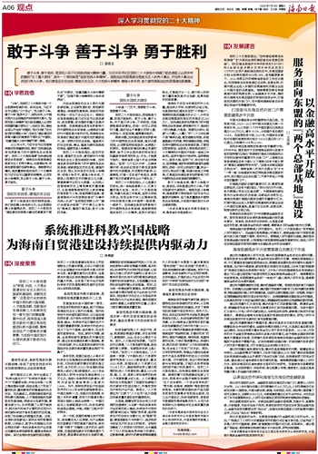 系统性推进科教兴国战略,海南肩负着特殊的历史使命