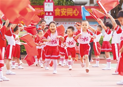 海口跨世纪成龙幼儿园运动会,孩子在游戏中锻炼成长。(资料图)