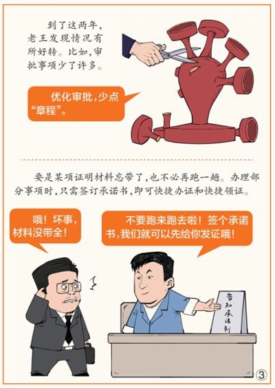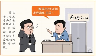 市场主体从事生产经营活动,往往需要各种审批手续。过多的审批就像一双双“有形之手”,束缚住企业手脚,使其失去活力。对此,做了多年生意的老王深有体会。