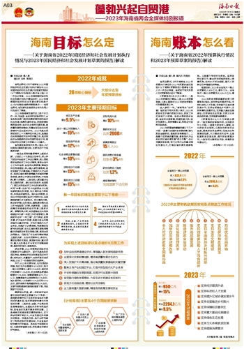 ■ 本报记者 傅人意 通讯员 符厚胜省两会期间,《关于海南省2022年预算执行情况和2023年预算草案的报告》(以下简称《预算报告》)提请省七届人大一次会议审查。省财政厅有关负责人对《预算报告》进行了解读。