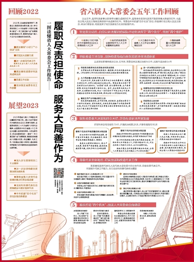 回顾20222022年,在省委坚强领导下,常委会以高度的政治责任感,深入学习贯彻党的二十大和省第八次党代会精神,锚定“一本三基四梁八柱”战略框架谋划推进工作,圆满完成省六届人大五次会议确定的目标任务。