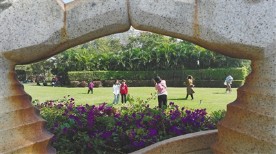 春节期间,东方市海东方公园游人纷至沓来。游客或踏浪嬉戏,或在草坪上拍照留念,享受美好假期。
