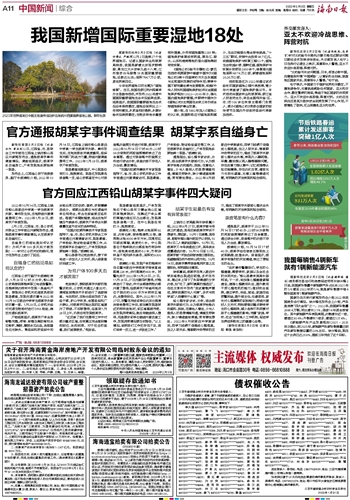 据新华社杭州2月2日电 (记者许舜达 严赋憬)2月2日是第27个世界湿地日。记者从国家林业和草原局获悉,我国再新增北京延庆野鸭湖、黑龙江大兴安岭九曲十八湾、江苏淮安白马湖等18处国际重要湿地,总数达82处;面积764.7万公顷,居世界第四位。今年世界湿地日的主题为“湿地修复”。当日,我国在浙江杭州西溪举办主场宣传活动,并发布2022年度中国国际重要湿地生态状况监测成果。结果显示,我国国际重要湿地生态状况总体保持稳定,湿地总面积比上一年有所增加,水质呈向好趋势,水源补给状况保持稳定;生物多样性丰富度有所提高,分布有湿地植物2391种;湿地保护修复成效明显,黑龙江、湖北、山东和海南等地的退化湿地得到有效恢复。