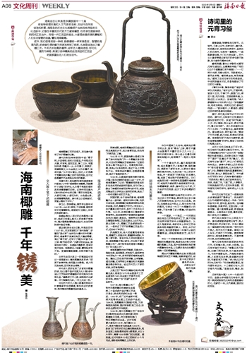明清时期,海南的椰雕技艺已经达到相当高超的水平,成为皇朝贡品,因此有“天南贡品”之誉。