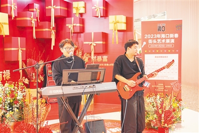今年春节期间,海口国际免税城推出街头艺人新春艺术展演,给市民游客的购物之旅增添文艺范。(海口国际免税城供图)