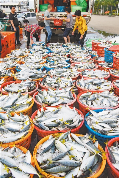 琼海市潭门港的渔民在装运海鱼。 特约记者 蒙钟德 摄