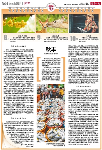 如果要用一个字来概括海南的秋天,应是“丰”。秋之于海南,稻谷飘香,鱼虾满仓,农民、渔民的脸上洋溢着收获的喜悦;秋之于海南,备种育苗,南繁充实了中国人的粮袋子和菜篮子;秋之于海南,绿中透黄,蕴藏“烟火”,为看风景的人带来视觉与味觉的双重享受。