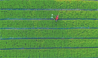 海口的一个蔬菜种植基地,一位农户在给大白菜浇水。 海南日报记者 张茂 摄