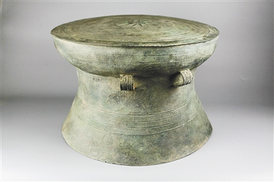 泊潮村出土的其中一面石寨山型铜鼓,现藏于儋州市博物馆。 刘亭亭 供图