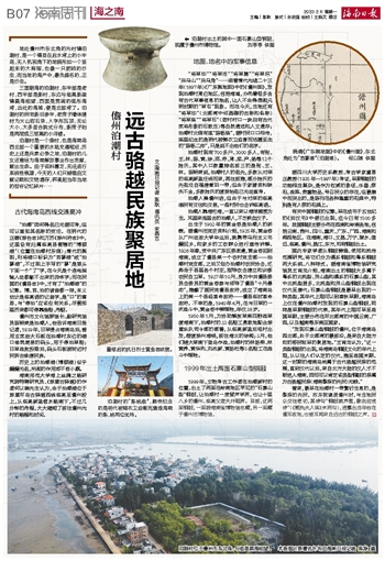 “发现石寨山型铜鼓的儋州,位于海南岛西北部,处于北部湾的最前沿,是来自大陆方向的移民较早的聚居地。”王育龙认为,“这一类型铜鼓的出现,将海南岛铜鼓文化的年代上限,从以往人们认定的汉代,推至战国末期。这一时期的海南岛尚属于古代骆越民族的范围,直到汉代以后,来自北方大陆的汉人才不断进入海南,因而可以肯定该类型铜鼓的族属为古骆越民族(海南黎族的先民)无疑。”