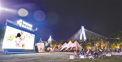 在鹿城三亚,第四届海南岛国际电影节开设免费户外沙滩展映活动,将海岛特色与电影文化深度融合,把影厅搬到了户外沙滩上,市民游客得以在阵阵海浪声中享受光影世界。