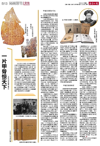 文\本刊特约撰稿 曾庆江2022年12月底,位于河南安阳的中国文字博物馆发布消息称,将发布500个未能释读的甲骨文,请大家一起来参与破解。尽管甲骨文作为成熟汉字的起源这一常识已经为大众所熟知,但遗憾的是,在目前发现的4500多个甲骨文单字中,被人们释读的只有1600多个,还有大量甲骨文单字有待破解。中国文字博物馆此前也曾发布“高额赏格”,但凡破解甲骨文一字,奖励10万元人民币。几年过去,只有复旦大学的古文字研究专家蒋玉斌博士因为破解“蠢”字而获得奖励,真可谓是一片甲骨惊天下。2023年,甲骨文的魅力在持续辐射,有着三千多年历史、代表着殷商文化的甲骨文中,究竟隐藏着多少秘密有待人们来破解?