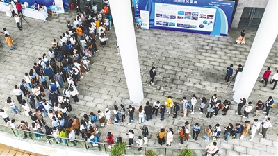 在招聘活动现场,求职者排成长龙。“今天对接会现场的人气火热。”国药中服免税三亚店招聘高级主管陈东表示,从学生报名以及意愿程度来看,活动质量很高,“现场接收的简历和岗位需求匹配度也比较高,我们也希望和全国有才有智、有意愿建设海南的学子一道建设海南自贸港。”