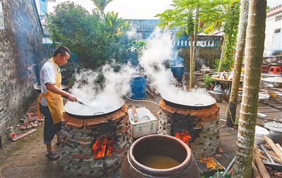 “从前都是本村或邻村的户主特地找上门,我们就接活。有时候碰上好日子,办宴席的人扎堆,乡厨就成了‘抢手货’。”文昌乡厨陈行顺自二十世纪八十年代起做乡厨,是当地经验丰富的老师傅。他告诉海南日报记者,“户主备菜,乡厨炒菜”是最为传统的模式,具体分工是户主采购食材、布置场地,并做好统筹协调工作,亲戚乡邻帮忙端菜和打下手,乡厨只需专注于烹饪。户主有时候给乡厨一点劳务费,有时候只是给几斤猪肉或一个羊腿,以示感谢,并非典型的雇佣关系。