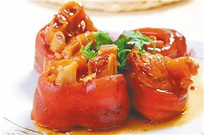 除了白斩鸡、羊肉、牛肉等,海南各地也有一些乡宴特色菜。海南东北部市县居民喜食海鲜,蒜蓉粉丝蒸鲍鱼、花蟹、白灼虾、豆豉蒸鳝鱼等是乡宴上的人气菜;西部市县的东坡绵蹄、烤乳猪、沙虫等让食客们回味无穷,海鲜“露面”也颇具特色;而在中部,黎族百姓会把长方形的桌子排成一列,在桌上铺上绿油油的芭蕉叶,端上盐焗阉鸡、三色饭、竹筒饭、鱼茶等美食招待宾客。