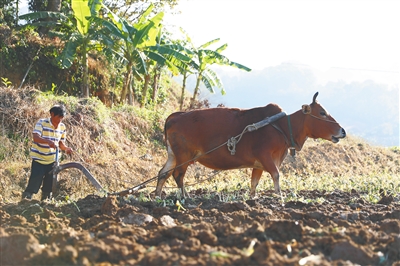 五指山市水满乡的农户在犁地。 海南日报记者 李天平 摄