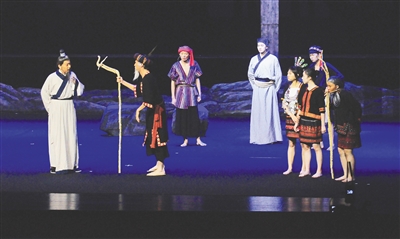 首届中国(海南)东坡文化旅游大会将于2月18日在海口开幕。大会期间,海南首部原创苏东坡主题话剧《海上东坡》将亮相。该剧目以苏东坡在海南的生活为背景,生动再现了苏东坡乐观的生活态度和爱民的高尚情怀。图为《海上东坡》剧照。 石怀逊 摄(更多东坡文旅大会报道见A03版)