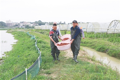海口市秀英区东山镇东苍村小龙虾生态养殖基地迎来大丰收。 通讯员 柴文娅 摄