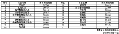 按照《地表水环境质量标准》(GB3838-2002)、《地表水环境质量评价办法(试行)》(环办〔2011〕22号)和《城市地表水环境质量排名技术规定(试行)》(环办监测〔2017〕51号)等评价,2023年1月,全省地表水总体水质为优,监测的191个断面(点位)中:水质优良(Ⅰ~Ⅲ类)断面(点位)占96.9%,无劣V类断面。19个市县水环境质量按由好至差排名分别为:三沙市、五指山市、昌江黎族自治县、白沙黎族自治县、琼中黎族苗族自治县、万宁市、陵水黎族自治县、保亭黎族苗族自治县、琼海市、澄迈县、海口市、乐东黎族自治县、三亚市、定安县、屯昌县、临高县、儋州市、东方市、文昌市。详见右表: