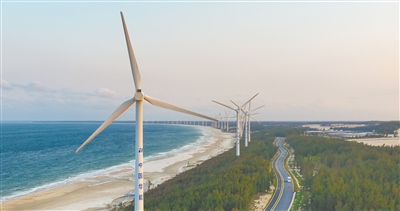 近年来,海南依托沿海丰富的风能资源,积极推进沿海风力发电,在沿海富风带建设了多个大型风电场,并促进风力发电、观光旅游等多业态融合发展,实现生态环境保护与经济可持续发展。本报记者 张茂 摄