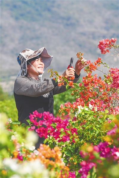 二月十七日,在三亚市崖州区三更村三角梅种植基地,农户在为三角梅修剪花枝。本报记者 王程龙 摄