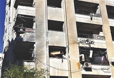 2月19日在叙利亚大马士革拍摄的在导弹袭击中受损的建筑。新华社发