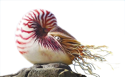别看如今的鹦鹉螺体长不过20厘米,5亿多年前,它们的祖先可是凭借庞大的体型、灵敏的嗅觉和凶猛的嘴喙,在远古海洋中扮演着顶级掠食者的角色。历经沧海变迁,大部分鹦鹉螺族群陆续灭绝,唯有一些小型卷壳鹦鹉螺逃过劫难,它们也被视为海洋“活化石”。