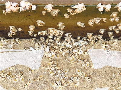 经过几年的发展,会文镇东风螺养殖形成了一定的规模。不过,没过多久,跟着吴日川一起养殖东风螺的乡亲们遇到了难题——东风螺的产量上来了,但销路不畅。为了减少损失,许多东风螺养殖户开始尝试养殖其他类型的海产品。