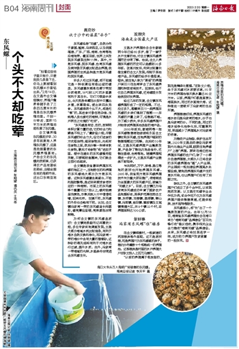 文\海南日报记者 张期望 通讯员 王先伟“别看这些池子里只有沙,只要我投几条鱼下去,你马上就能看到东风螺从沙里钻出来。”2月14日,在文昌市会文镇烟墩村,养殖户詹家奋随手丢了三条四五厘米长的海鱼在东风螺养殖池里。不到一分钟后,面积15平方米的养殖池底布满了东风螺。