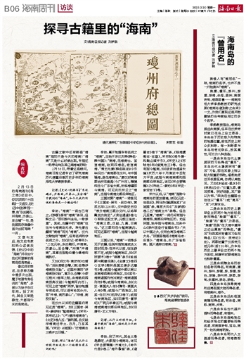 珠崖、儋耳、琼州、琼崖、琼海、朱垠、香洲、南溟奇甸、海滨邹鲁……海南师范大学李勃教授的研究成果《海南岛诸别称之由来》一文,为我们展现这座风物富饶的岛屿曾经用过的多个名字。