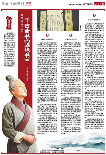 精彩的故事,丰富的内容,众多的英雄人物,真实的历史传奇,还有众多的谜题,使得《越绝书》这一部千古奇书散发独特的魅力,在新一轮关注热潮中,又吸引更多的人深读并一探其究竟。
