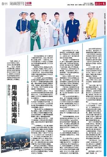 与许多海南本土音乐人一样,金岛乐团的目标是借助音乐发掘弘扬海南本土文化。从他们的原创作品中不难看出,这支乐队有着鲜明的海南特色、琼海印记。