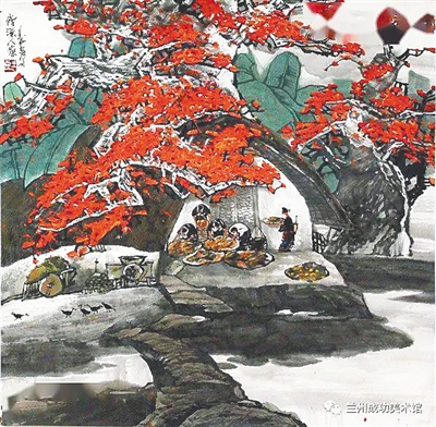 《傍溪人家》(国画) 王良 作